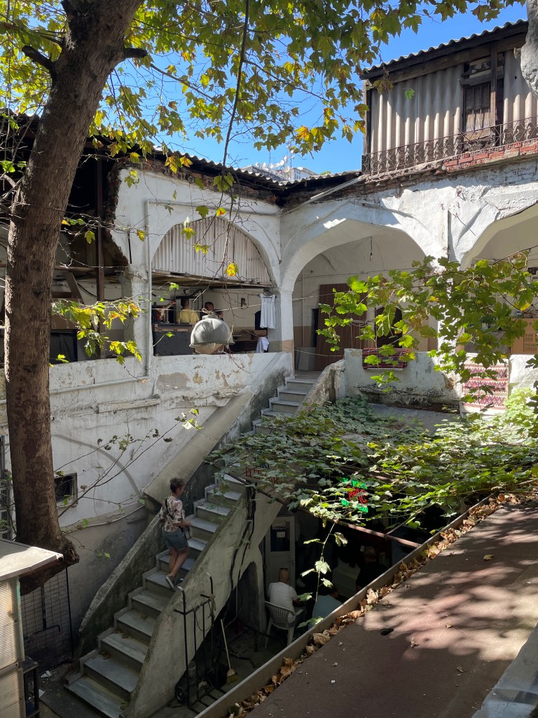 Bursa was up first, the fourth largest city in Turkiye. Known originally for its textiles of silk and lace, Bursa is today the center of the Turkish automobile manufacturing industry. Mountains hug the city to the southeast and green space can be found throughout the city. Incredibly, human settlement has been present in the region since 5200BC. Wishing to stay within Bursa’s historic center, I located an Airbnb in a restored Ottoman home. The property sat on the hillside just above the historic Ottoman city walls.